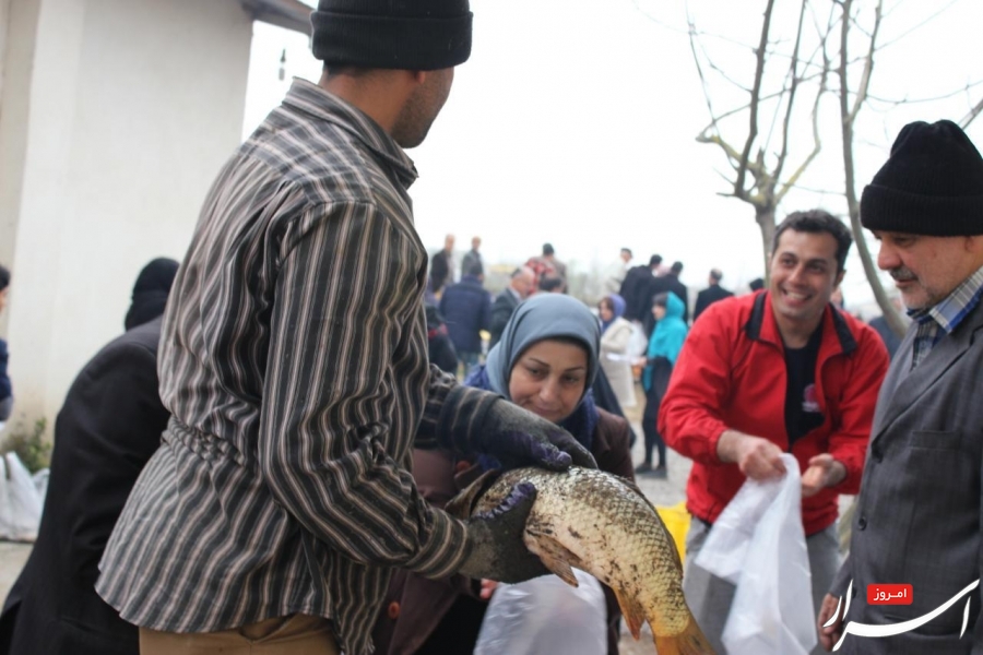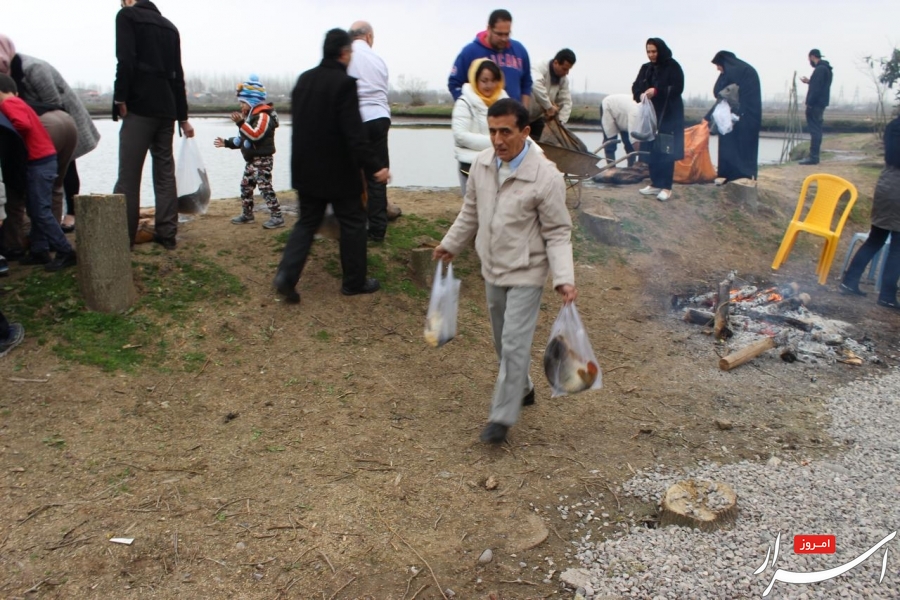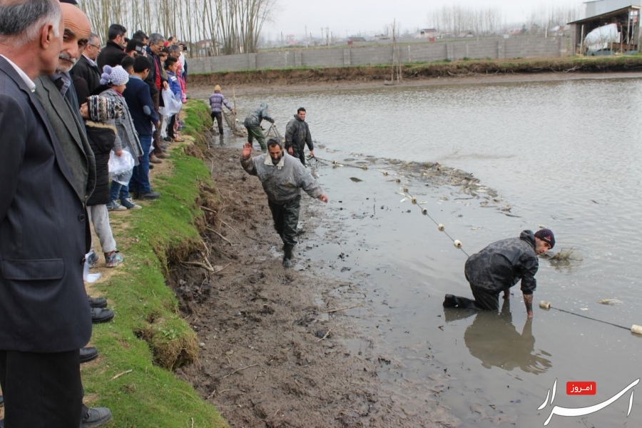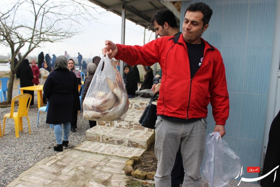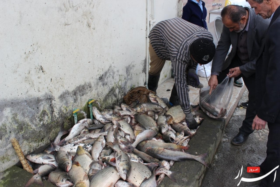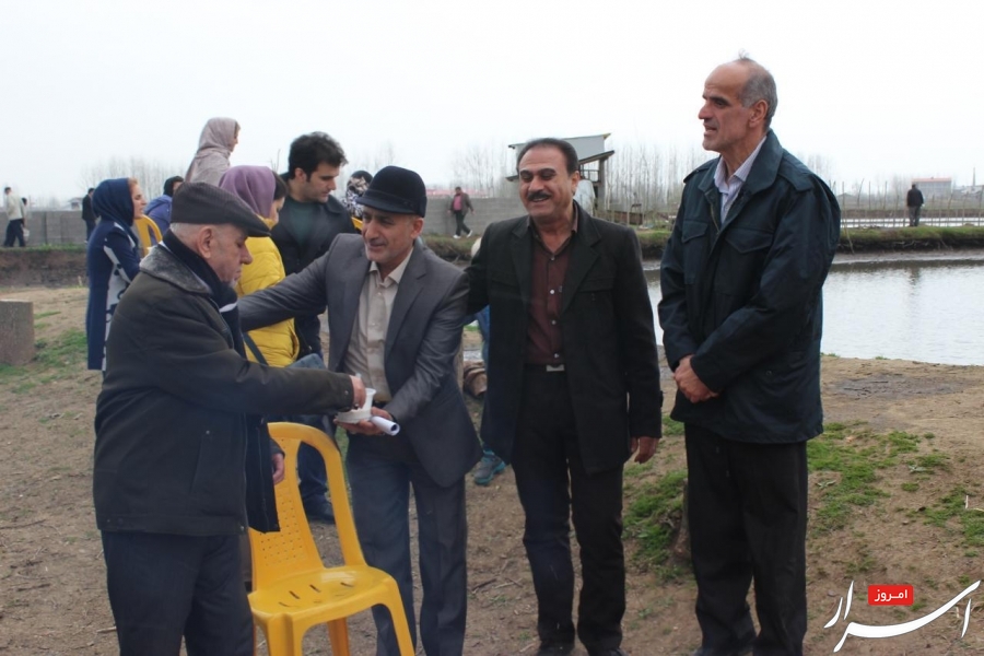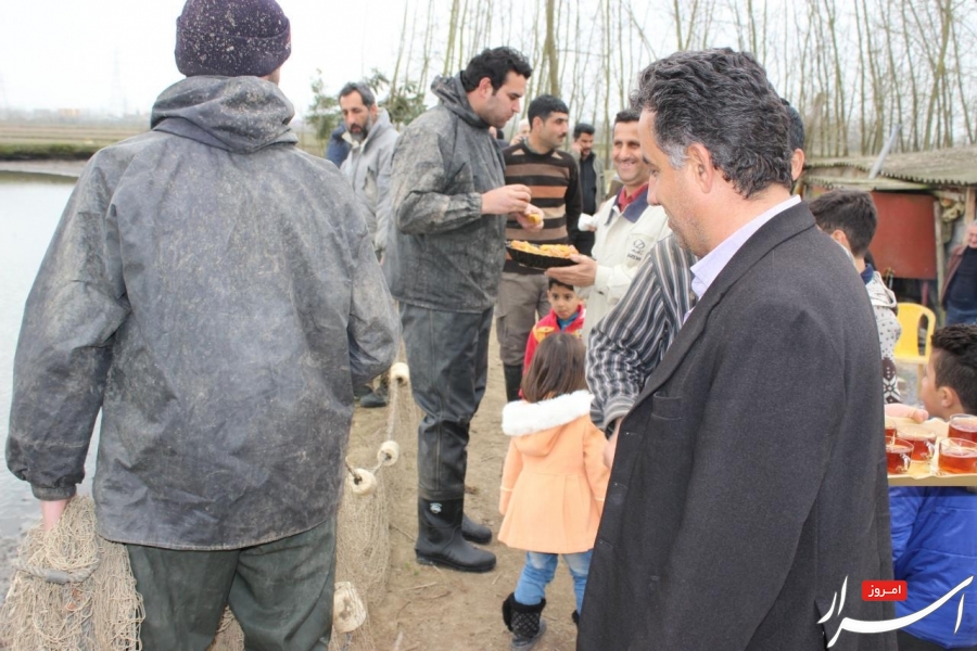 اختصاصی/اسرار امروز. سید علی موسوی کشاورز نمونه روستای تازه آباد بخش خمام از توابع شهرستان رشت هفت سال پیاپی ،جشن برداشت ماهی از استخر بزرگ خود را با حضور دوستان ، همسایگان و برخی مسئولین برگزار کرد.