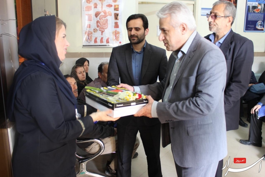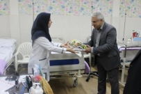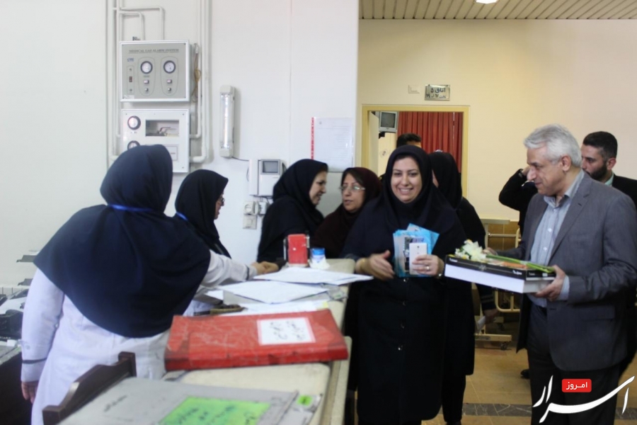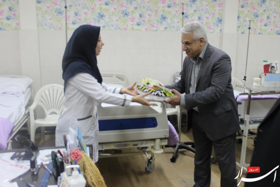 اختصاصی/اسرارامروز.همزمان با روز پرستار،دکتر انوش دهنادی رییس مرکز آموزشی درمانی رازی با حضور در بخشهای مختلف این بیمارستان با اهدای گل و شیرینی به پرستاران تبریک گفت.